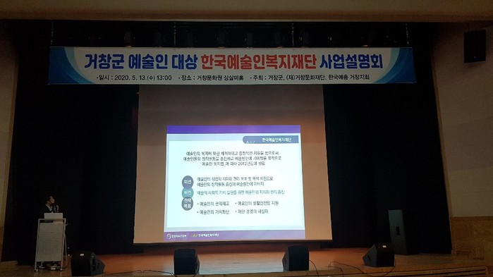 이번 사업설명회에서는 거창군 예술인들을 대상으로 2020년도 한국예술인복지재단에서 추진하는 예술복지사업 전반에 대해 안내하고, 특히 관내 예술인들의 관심이 높은 예술활동 증명제도, 창작준비금 지원제도에 대해 자세한 설명과 관내 예술인들의 궁금증을 풀어주는 시간을 가졌다.