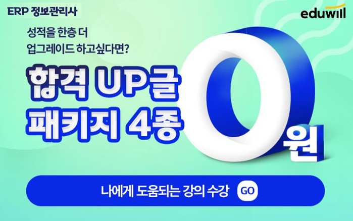 [시민일보 = 여영준 기자] 종합교육기업 에듀윌(대표 박명규) ERP정보관리사가 시험 준비생 대상 ‘합격 UP글패키지 4종’을 무료로 제공한다.