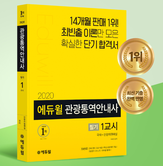 [시민일보 = 황혜빈 기자]종합교육기업 에듀윌(대표 박명규)이 발간한 ‘2020 에듀윌 관광통역안내사 필기 1교시 국사+관광자원해설’ 수험서가 온라인서점 예스24의 관광통역 부문에서 3월 2주차 베스트셀러 1위를 차지했다.