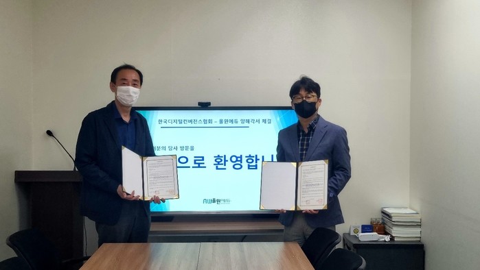 이날 협약식에는 한국디지털컨버전스협회 김윤식 사무총장과 올윈에듀 김기상 대표가 참석했다. 이들은 국민내일배움카드제 인터넷원격훈련 사업의 성공적인 운영을 위해 서로 긴밀한 협력 관계를 유지하고 상호간의 이익이 증진될 수 있도록 유대를 강화한다는 내용을 담은 협약서를 교환했다.