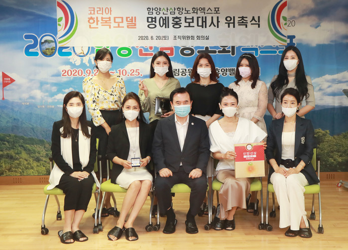 2020함양산삼항노화엑스포조직위원회(위원장 김경수 경상남도지사)는 지난 20일 오전 11시 조직위원회 회의실에서 코리아한복모델협회 소속 회원 15명을 엑스포 명예홍보대사로 위촉했다고 밝혔다