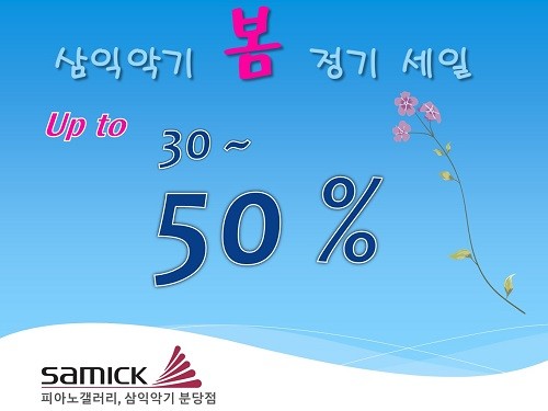 매년 4월에 열리는 삼익 피아노 봄 정기세일은 1년 중 가장 저렴하게 전자피아노와 어쿠스틱피아노를 제공하고 있으며, 전공자와 취미 연주자들의 관심이 집중 되는 기간이다. 특히 올해 봄 정기세일에서는 지난해부터 장기간 지속된 코로나 19 상황으로 위축되어 있는 피아노 소비시장 활성화를 위해 예년보다 대폭 늘어난 30~50% 의 할인율을 적용하여 서울 강남권, 분당, 용인 등 인근 지역 뿐만 아니라 전국의 피아노 소비자에게 제공한다.
