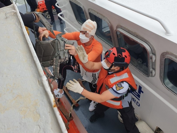 ▲ 목포해경, 신안 홍도 해상서 작업중 머리 다친 40대 선원 긴급이송(출처=목포해양경찰서) |