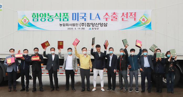 함양군은 19일 오후 4시 안의면 NON농업회사법인에서 서춘수 함양군수를 비롯한 수출관계자 등 20여명이 참여한 가운데 함양산양삼 가공품 3종 27만불을 미국 LA로 수출하는 선적식을 가졌다.