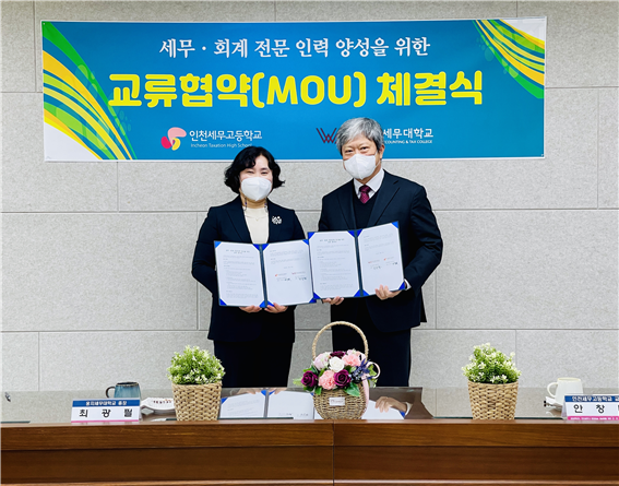 [시민일보 = 고수현 기자] 웅지세무대학교(총장 최광필)는 22일 인천광역시 인천세무고등학교(교장 안창미)와 세무·회계 전문 인력 양성을 위한 업무 협약(MOU)을 체결했다고 밝혔다.