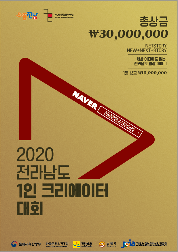 전라남도와 (재)전남정보문화산업진흥원이 지역의 우수한 1인 크리에이터를 발굴하고 영상 콘텐츠 활성화를 위해 총상금 3천만원이 걸린 ‘2020년 전라남도 1인 크리에이터 대회’ 공모에 들어간다.