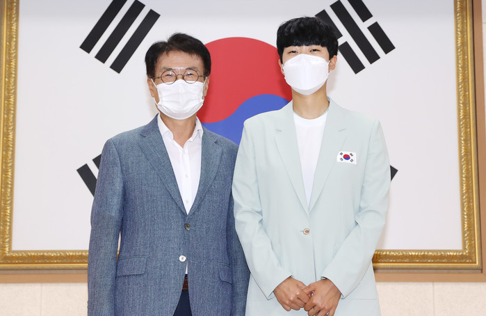 이날 환영 행사는 군청 대회의실에서 코로나19 방역수칙과 사회적 거리두기 지침을 준수하며 이승옥 강진군수와 군 체육회 관계자, 작은할아버지 안종개님 등 남포마을 주민 최소의 인원만 참석한 가운데 진행됐다.