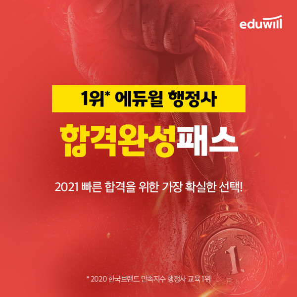 [시민일보 = 여영준 기자] 종합교육기업 에듀윌(대표 박명규) 행정사가 2021년 빠르고 확실히 동차 합격을 준비하는 수험생을 위해 ‘2021 합격완성패스’를 마련하고 수강생을 모집한다.