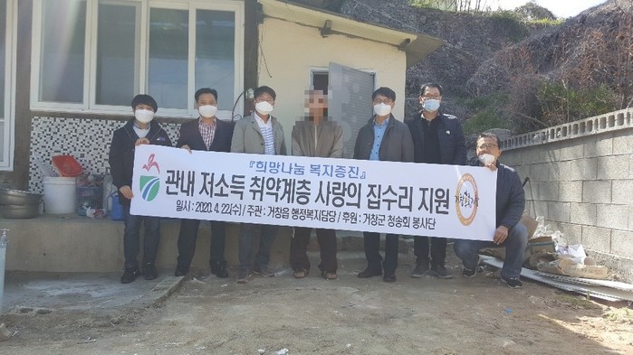 거창읍(읍장 신영수)은 지난 19일부터 22일까지 4일간 거창군 청송회 봉사단(회장 강재호)에서 관내 주거환경이 열악한 저소득가구에 쾌적한 생활환경을 만들어주기 위해 회원들이 자발적으로 모여 주거환경개선사업을 추진했다고 23일 밝혔다.