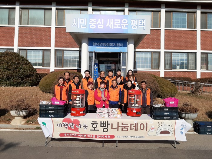 경기 평택시 현덕면 지역사회보장협의체는 19일 겨울철 복지사각지대 발굴홍보 일환으로 호빵나눔데이 행사를 진행했다. 사진은 행사에 참여한 관계자들이 기념촬영을 하는 모습.(사진제공=평택시청)
