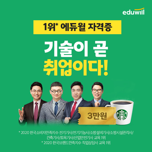 [시민일보 = 여영준 기자] 종합교육기업 에듀윌(대표 박명규)이 취업 준비생들의 성공적인 취업을 돕기 위해 기사자격증 취득 과정 할인 쿠폰을 제공하는 ‘기술이 곧 취업이다!’ 이벤트를 진행하고 있다.