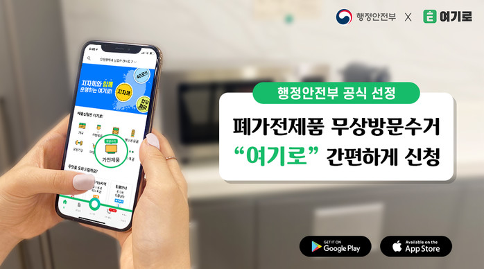 이용방법은 구글플레이스토어·앱스토어에서 ‘여기로’ 애플리케이션에 접속해 ‘가전제품 무상수거’ 카테고리를 통해 접수신청 하면 되며, 한국전자제품자원순환공제조합으로 자동연결되어 손쉽게 접수 처리가 가능하다.
