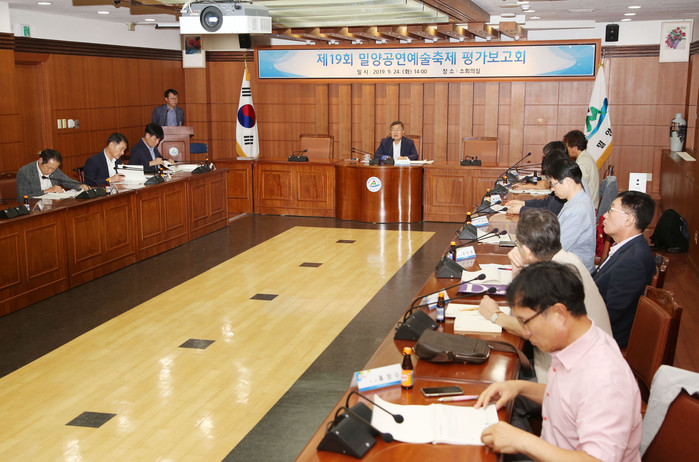 밀양시는 지난 24일 시청 소회의실에서 박일호 시장을 비롯해 안태경 밀양공연예술축제추진위원장 및 추진위원, 축제 관계자 등 20여 명 이 참석한 가운데 제19회 밀양공연예술축제에 대한 평가 보고회를 가졌다.