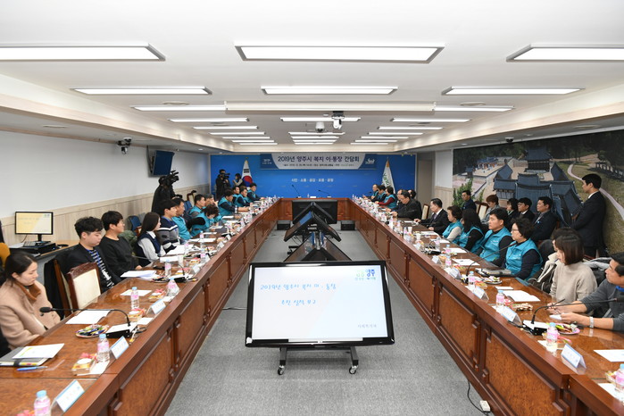 경기 양주시는 26일 시청 상황실에서 ‘2019년 양주시 복지 이·통장 간담회’를 개최했다. 복지 이·통장제는 지역 실정에 밝은 마을 이·통장을 활용해 복지사각지대를 발굴하고 어려운 이웃의 요구를 수시로 파악해 복지서비스와 신속히 연계하는 등 읍·면·동 중심의 인적안전망 강화 방안이다. 사진은 참여자들이 회의를 하고 있는 모습.(사진제공=양주시청)