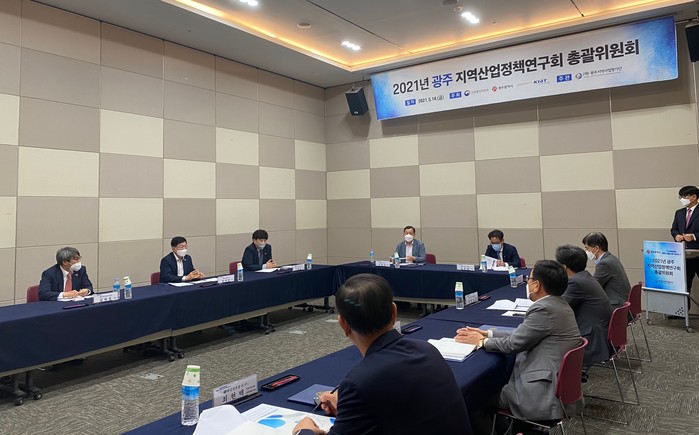 | ▲ 광주광역시 산업환경 변화 대응 ‘2021년 광주 지역산업정책연구회’ 총괄위원회 개최 / 사진=광주광역시 제공 |