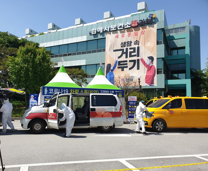 김해시는 11일부터 코로나19 차량방역 드라이브스루를 운영한다고 밝혔다. 시는 감염 취약계층이 이용하는 어린이집, 유치원, 학원, 사회복지시설 등의 승합차량을 우선적으로 방역하기로 했다.
