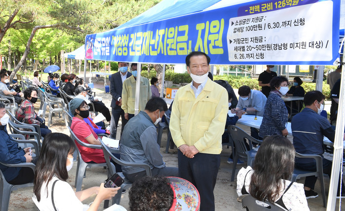 이날 방문은 경남형 긴급재난지원금을 받지 못하는 군민들의 생활안정과 지역경제 활성화를 위해서 기준 중위소득 100% 초과 세대와 전 소상공인을 대상으로 지원금을 지급하고 있는 가운데, 현장의 지급상황과 불편사항을 점검했다.