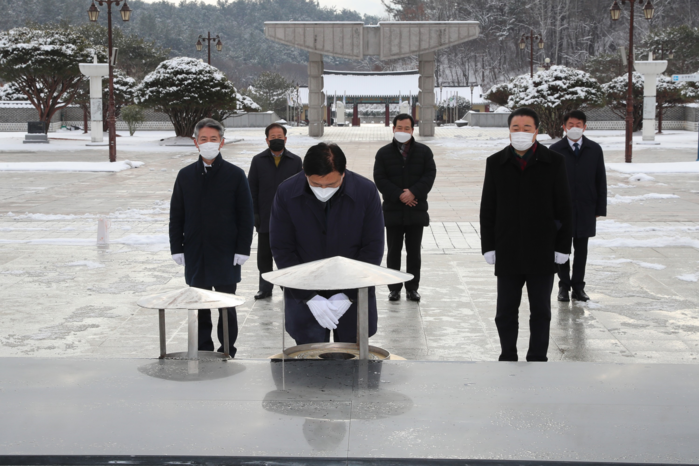 전라남도의회(의장 김한종)는 1일 오전 10시 국립 5.18 민주묘지를 찾아 새해 희망찬 도약을 다짐하는 ‘2021 신축년 신년 참배’를 했다.