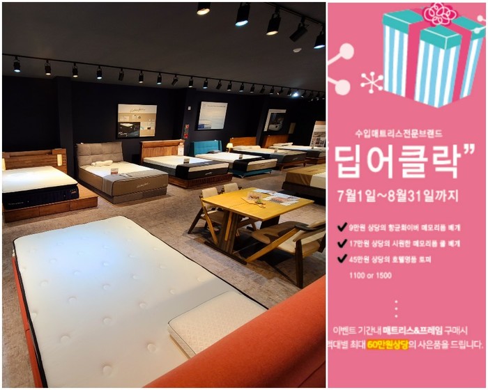 이와 함께 이와 함께 편안한 숙면에 도움을 줄 수 있는 매트리스커버, 덕다운 이불 등 명품 호텔침구류의 다양한 품목을 준비하고 저렴한 가격에 선보이고 있으며 매트리스와 프레임, 침구세트를 함께 구매 시 추가할인도 적용 받을 수 있다.
