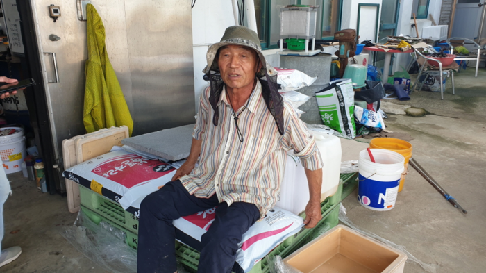 | ▲ 여수시 돌산읍 참조기 양식어민 박윤규씨 정부의 사료값 보조가 갑자기 줄었고 외국인 노동자 또한 구할 수가 없어 경영에 애로점을 토로했다.(사진=김민재 기자) |