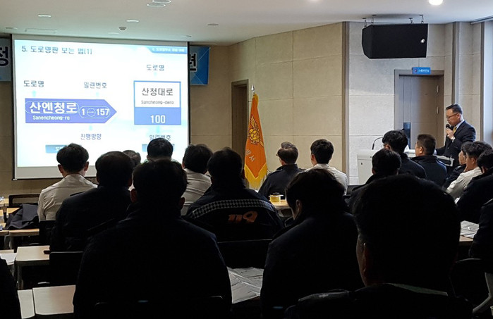 군에서는 이날 조현형 공간정보 담당계장이 강사로 나서 도로명주소 부여원리와 도로명주소 안내시설물을 활용해 현장을 찾는 방법을 안내했다.