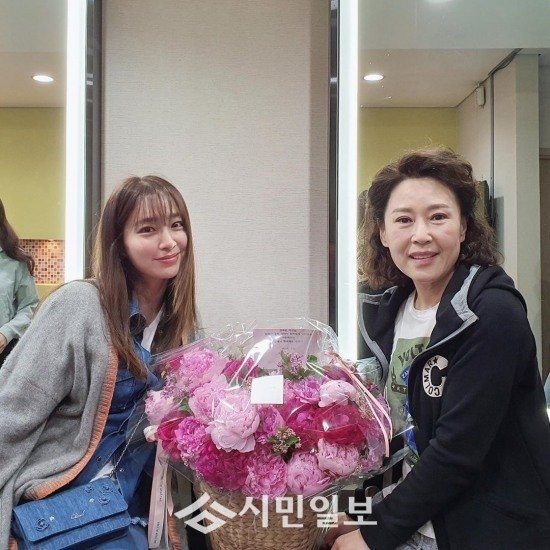 공개된 사진 속 이민정은 KBS 2TV 주말드라마 '한 번 다녀왔습니다'에 함께 촬영 중인 차화연과 꽃선물을 한뒤 다정하게 투샷을 남기는 모습으로 훈훈함을 자아냈다.