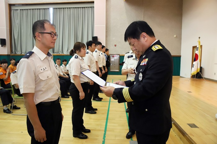 최근 서울 은평소방서가 심폐소생술로 응급환자의 생명을 구한 서울교통공사 정재민 보안관과 소방대원 6명에게 하트세이버 증서와 배지를 전달했다. 사진은 하트세이버 증서와 배지를 수여받고 있는 소방대원들의 모습.(사진제공=은평소방서)