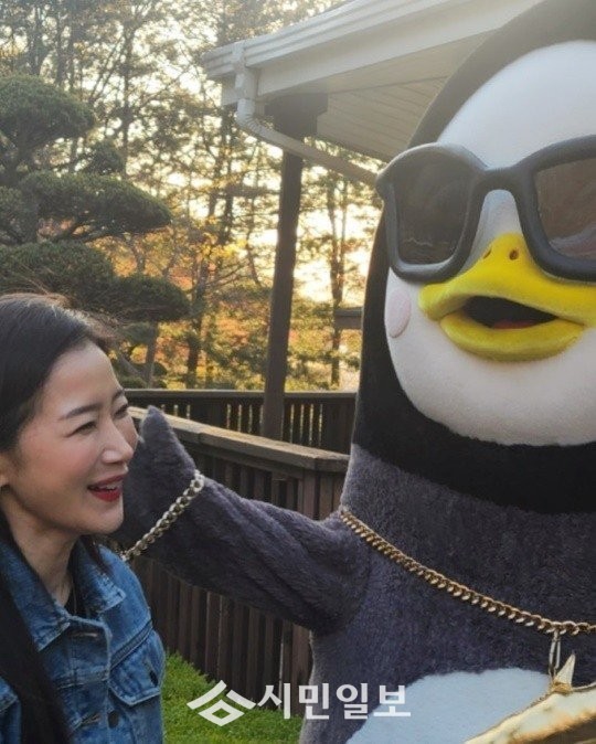 공개된 사진 속 김하영은 펭수와 만나 환한 미소를 지으며 다정한 분위기를 드러내 훈훈함을 자아냈다.