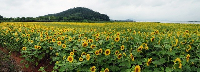 [해남=정찬남 기자] 전남 해남공룡박물관 주변이 노란 해바라기 물결로 가득 찼다.