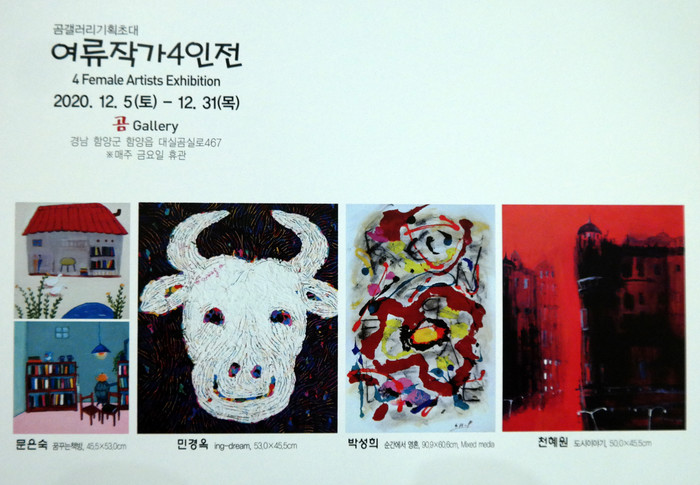 경남 함양 지리산 자락 곰갤러리에서 12월5일부터 31일까지 겨울 초입에 한해를 돌아보며 마무리 하는 시점에서 4인의 여류작가 초대전을 연다.