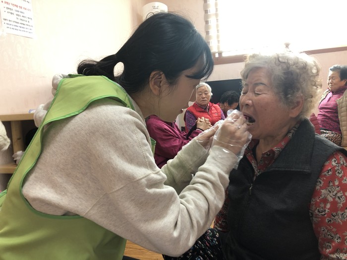 충남 홍성군 보건소는 최근 결성면·은하면의 52개 경로당을 대상으로 개별 맞춤형 구강서비스 프로그램인 ‘찾아가는 오복치아 장수교실’ 운영을 시작했다. 프로그램은 칫솔질 교육, 의치 관리방법 교육 등으로 진행된다. 사진은 칫솔질 교육을 하는 모습.(사진제공=홍성군청)