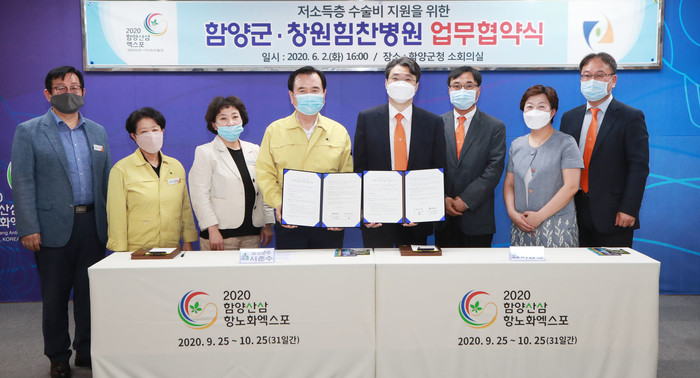 협약을 통해 함양군내 기초생활 수급권자, 차상위 계층 또는 중위소득 80%이하인 저소득 군민에게 창원힘찬병원 최상의 의료서비스를 제공하고 진단 검사비, 수술비, 진료비 등 환자본인 부담금을 지원하게 됐다.