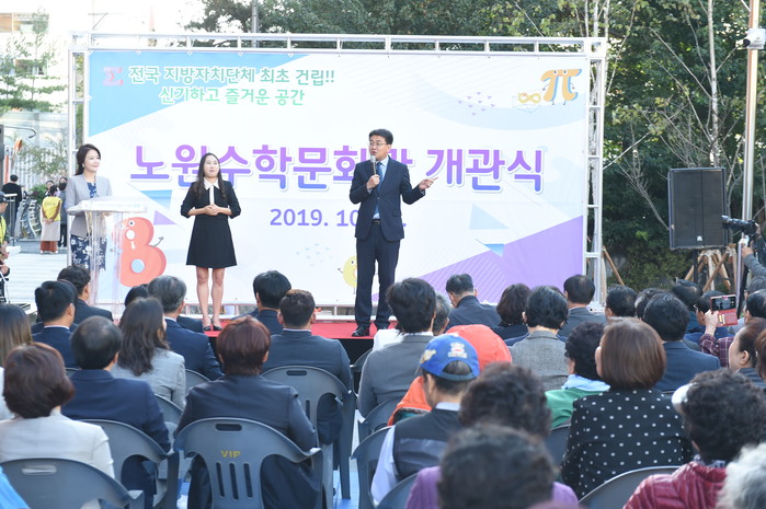 오승록 서울 노원구청장은 최근 노원수학문화관 앞마당 및 당현천 수변무대에서 열린 ‘노원수학문화관 개관식’에 참석했다. 이날 개관추진 경과보고 등에 이어 아이돌의 개관 기념공연이 펼쳐졌다. 사진은 오 구청장이 인사말을 전하는 모습.(사진제공=노원구청)