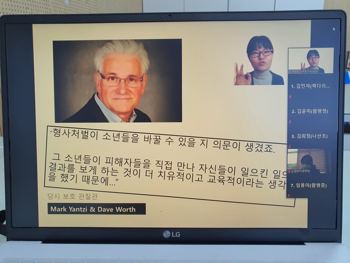 이번 연수는 줌(Zoom)을 통한 온라인 방식으로 학교 현장에서 생길 수 있는 다양한 갈등 상황에서의 생활교육과 관련하여 관계 중심의 회복적 문화를 확산시키기 위한 목적으로 추진됐다.