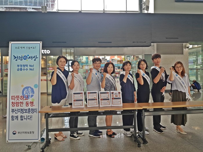 부산지방보훈청(청장 권율정)은 10일 부산역 2층 대합실에서 부산지방병무청, 코레일 부산경남본부와 함께 ‘청렴미션 릴레이 챌린지’의 일환으로 ‘합동 청렴캠페인’을 실시했다고 밝혔다.