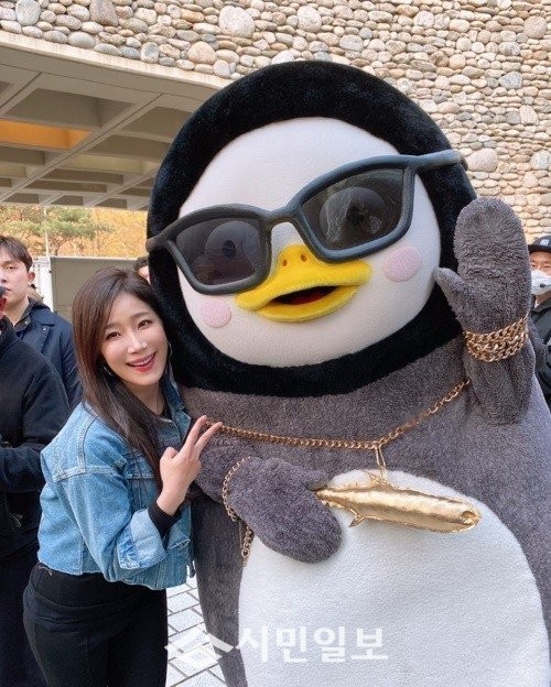 사진에는 MBC '신비한TV 서프라이즈' 촬영현장에서 EBS 인기 크리에이터 펭수와 인증샷을 남기고 있는 김하영의 모습이 담겨 훈훈함을 자아냈다.