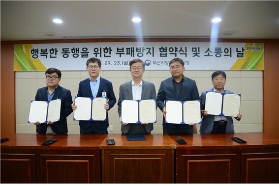 부산 지방 국토관리청(청장 정태화)는 9월 23일 관내 12개 신규 건설현장 관계자와 ‘부패방지협약‘을 체결하고 공정하고 청렴한 건설문화 정착과 갑·을 문화 개선을 위해 함께 노력할 것을 다짐하였다.