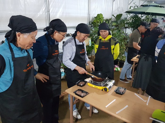 경기 평택시는 지난 16일 남성들의 요리 프로그램 참여를 통한 ‘가정의 화합과 사회봉사 실현’이라는 일석이조의 프로그램인 ‘냠냠대디 봉사단’ 양성과정을 개강했다. 사진은 참여자들이 떡갈비를 만들고 있는 모습.(사진제공=평택시청)