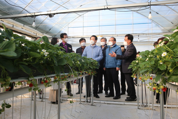 특히 3,230㎡ 규모로 조성한 고온극복형 스마트온실은 동고 11.5m로 건물 4층 높이의 큰 규모의 온실인데, 이는 식물의 적정 생육 온도를 조절하여 고온 피해를 경감하고 사계절 작물의 생산이 가능하게끔 한 혁신적인 시설이다.