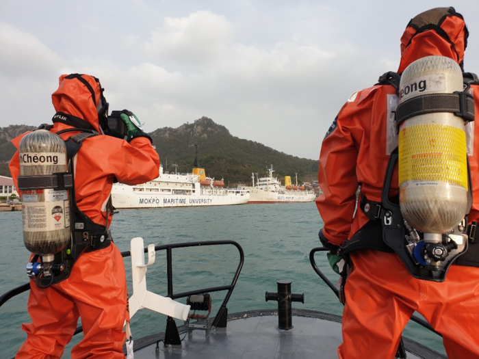 목포해양경찰서(서장 정영진)는 지난 22일 오후 4시경 목포해양대학교 실습선 부두와 인근해상에서 영산강유역환경청 등 7개 기관 및 단체 100여 명이 참석한 가운데 해상화학사고 대응 합동훈련을 실시했다고 23일 밝혔다.