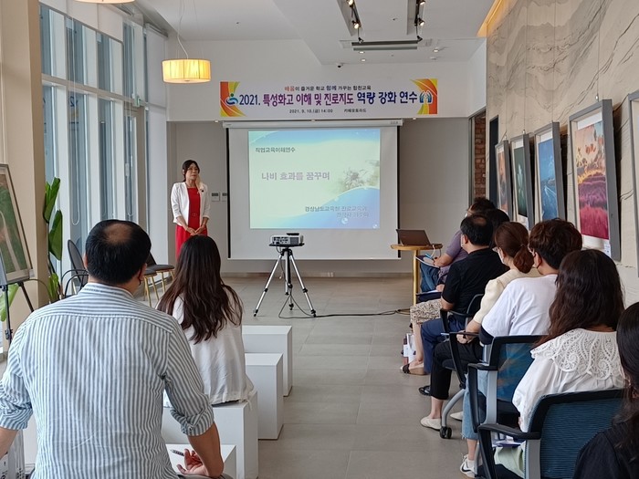 경상남도합천교육지원청(교육장 정종화)은 9월 10일 카페모토라드에서 ‘2021. 특성화고 이해 및 진로지도 역량 강화 연수’를 실시하였다.
