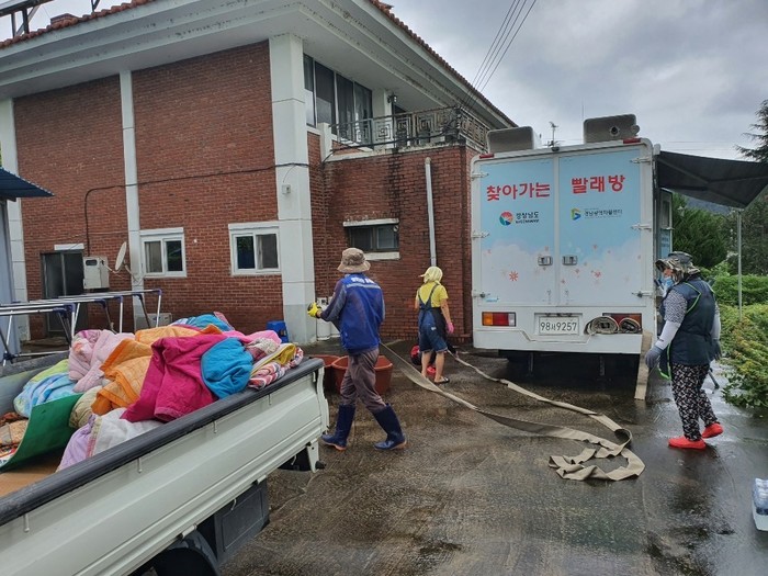 합천군은 지난 10일 극심한 수해 피해를 입은 관내 수해민에 찾아가는 빨래방 서비스를 제공했다고 밝혔다.