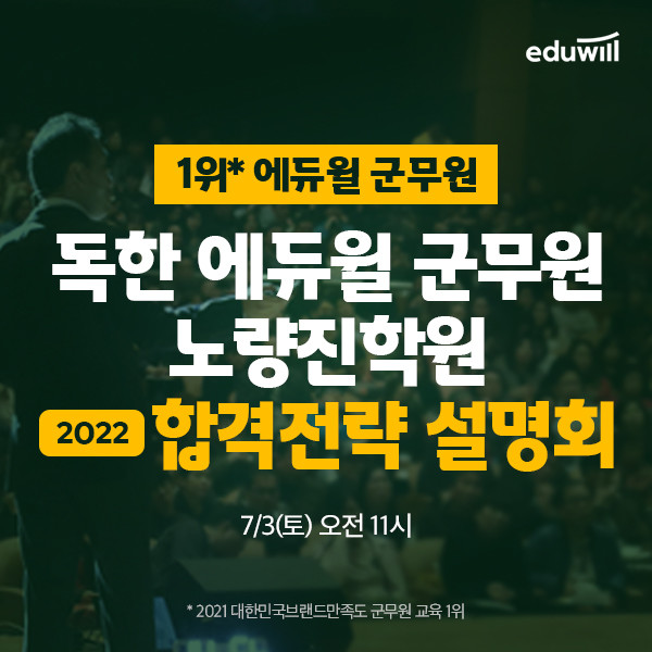 [시민일보 = 여영준 기자] 종합교육기업 에듀윌(대표 박명규) 본사가 직접 운영하는 ‘독한 에듀윌 군무원 노량진학원’이 3일 오전 11시, 에듀윌 3관에서 ‘2022 합격전략 설명회’를 개최한다.
