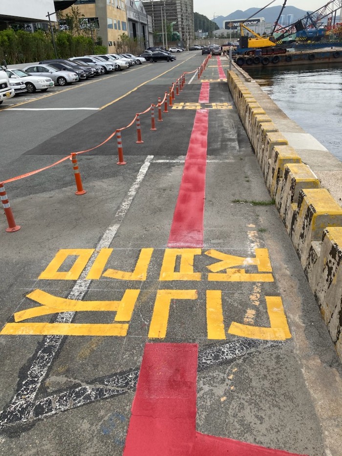 안벽 끝부분 안쪽에 폭 45cm의 붉은색 안전선을 1,400m 가량 표시하고, ‘접근금지’, ‘추락위험’경고문구도 고휘도 비드(유리알)를 사용해 야간에도 쉽게 눈에 띄도록 했다.