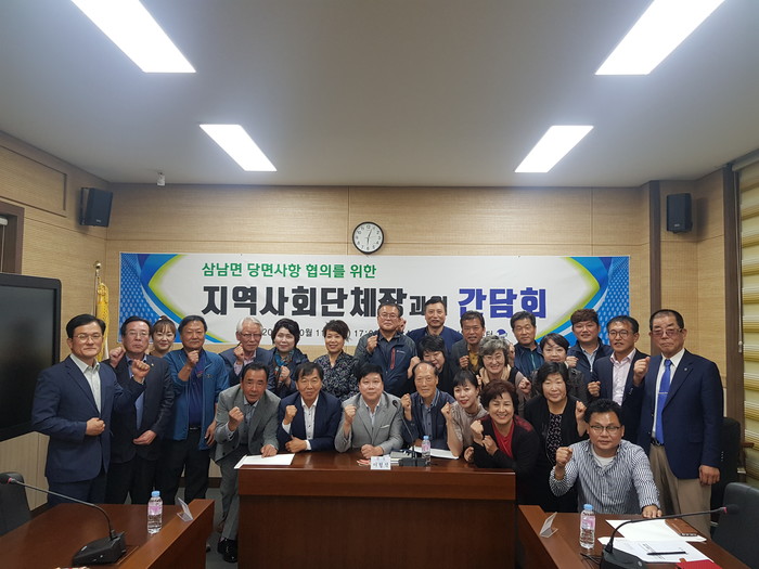 삼남면은 인구 2만 명을 넘어선 가운데 11일 삼남면 행정복지센터 2층 소회의실에서 읍 승격 등 지역현안 협의를 위한 사회단체장과의 간담회를 열었다.
