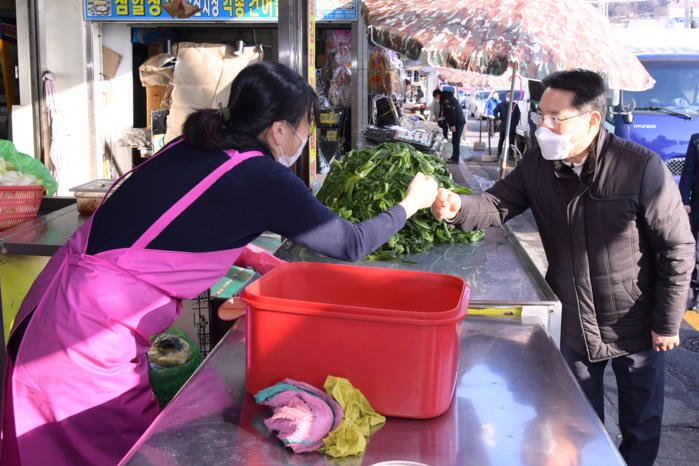 권 시장은 사흘에 걸쳐 전통시장과 상가를 돌며 코로나19로 직격탄을 맞은 상인들이 장사를 하며 느끼는 어려움을 나누며 격려하는 등 새해 인사를 전하고 희망의 메시지를 나눴다.