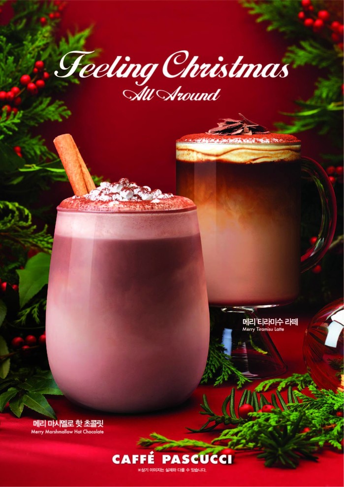 신제품 음료 2종은 ▲ 초콜릿의 진한 풍미와 시나몬 향, 마시멜로우의 달콤함이 풍성하게 잘 어우러진 ‘메리 마시멜로 핫 초콜릿(R/5,900 원)’, ▲ 이태리 정통 디저트인 티라미수(Tiramisu)를 이용한 베이스에 에스프레소, 우유를 함께 넣은 후 치즈 크림 폼을 올린 ‘메리 티라미수 라떼(R/5,900원)’ 등이다.