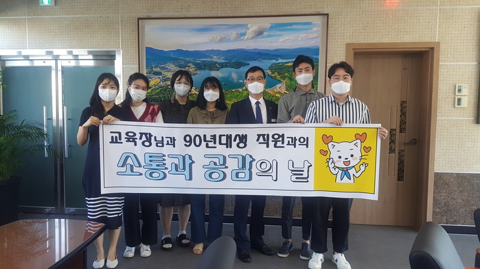 “세대 공존의 조직문화는 서로 간의 공감과 이해에서 시작되며, 그 실천을 위해 새로운 사회의 중심으로 등장한 ‘밀레니얼 세대(90년대생) 직원’들과 솔직한 이야기를 나누고 싶다”는 교육장의 제안으로 갖게된 이번 소통의 자리는 직원들이 자유롭게 의견을 제시할 수 있도록 다른 간부 공무원들의 배석 없이 진행했으며, 빠르게 변화하는 시대 흐름 속 ‘공직사회 조직문화’와 ‘일하는 방식’에 대해 참신하고 진솔한 생각을 나누는 등 세대 간 생각의 차이를 이해하고 공감하는 시간이 됐다.