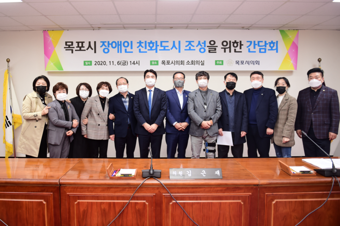 목포시의회 김근재 의원이 주최한 간담회는 장애인 관련 기관 및 단체 대표 5명과 김관호, 김수미, 이금이, 이형완, 문차복 목포시의회 의원 등 20여 명이 참여한 가운데 열렸다.