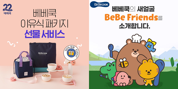 | ▲ (좌)베베쿡 이유식 패키지 선물서비스, (우)베베쿡 베베프렌즈 캐릭터 |